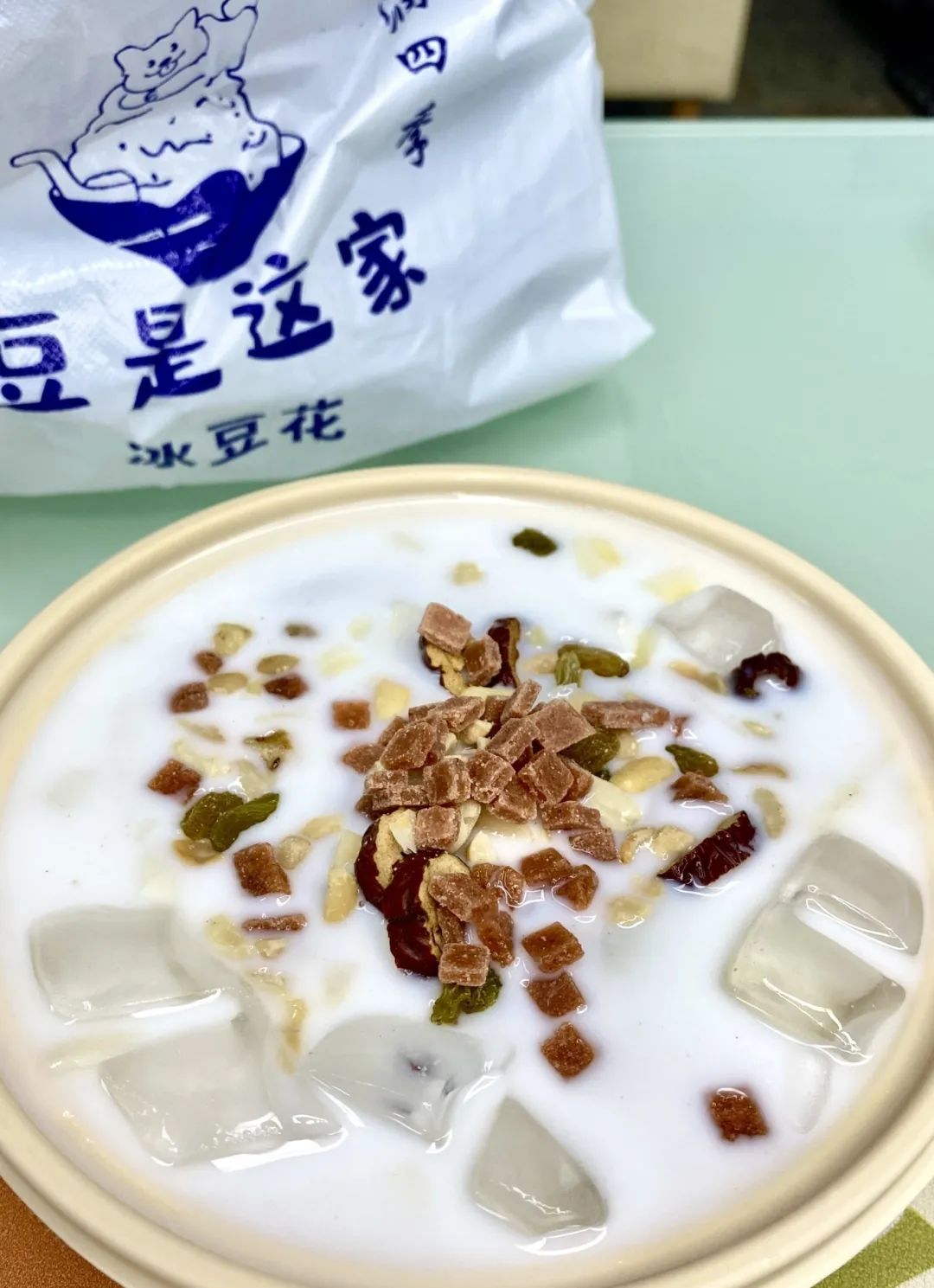 一看店名就知道,这家主打冰豆花,椰奶的、酒酿的、老式红糖的,还有加青团小料的、芋泥小料的,种类超多。