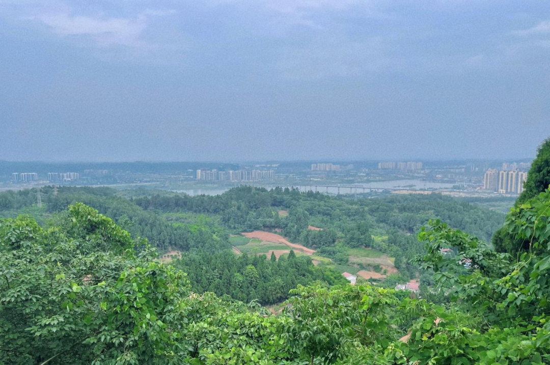 行至半山腰,是一处观景台,在这里可以俯瞰船山城景。白天,山体、涪江与大桥一体相连,壮丽景色尽收眼底;晚上站在这里观万家灯火,更觉城市繁华。