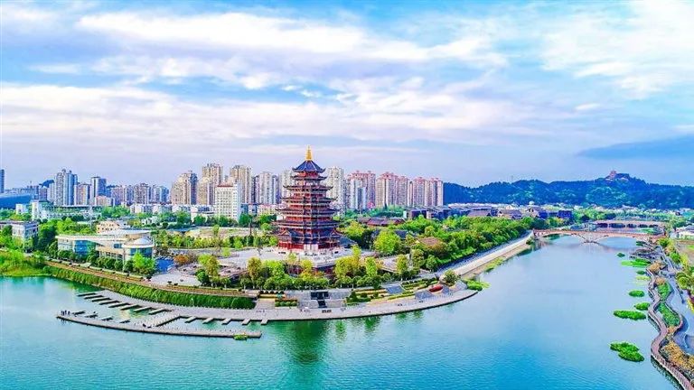 行走遂宁,城中水系相连成脉,湖库星罗棋布,居业伴水而聚,山水交映城中。