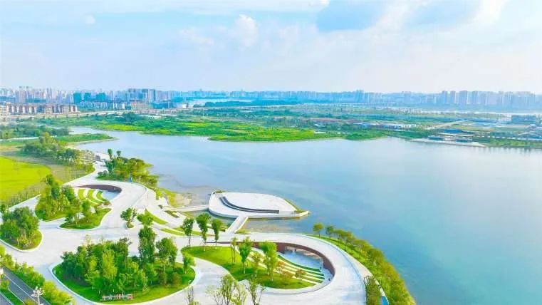 截涪江而出平湖秋月,治河滩而成湿地绿野。以湖为心,遂宁在观音湖沿岸建起十多个湿地,串联成绵延26公里的“绿丝带”,总面积845公顷,实现了“落霞与孤鹜齐飞,秋水共长天一色”的“西部水都”独特景观。