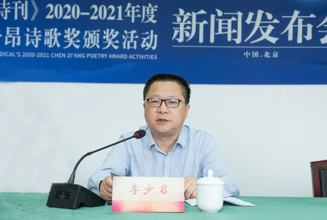 遂宁市委宣传部副部长、市文化广电旅游局局长魏毅介绍本次活动的总体规划和筹备情况,今年是遂宁国际诗歌周暨《诗刊》年度陈子昂诗歌奖颁奖活动走过的第七个年头,本届活动以“百年新征程 诗歌再启航”为主题,深入贯彻习近平总书记对文艺工作的指示要求,奋力书写新时代。本届活动由中国作家协会《诗刊》社、中共遂宁市委、遂宁市人民政府主办,拟定文艺演出(颁奖)、会议座谈、采风创作、沉浸体验等活动。包括“古风古韵,唐音唱诗”经典咏流传唱诗会、新时代诗歌遂宁(射洪)论坛、《诗刊》2020—2021年度陈子昂诗歌奖颁奖晚会、“诗里酒里,射洪等你”采风活动等,将颁布“百年路 新征程”诗歌创作工程特别奖,本次活动是一次文学成果展示、艺术交流、采风创作的盛会,也是一次展示遂宁新面貌的集中亮相会。