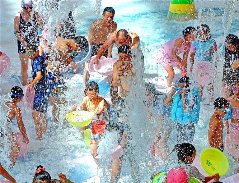 当“海浪”袭来,游客随着浪花的起伏欢呼雀跃。在中国死海旅游度假区,一汪来自地底千米之下的盐卤水与惊险刺激的高空滑道、漂浮等现代化游乐方式组合在一起,成为游客夏日消暑的清凉水世界。