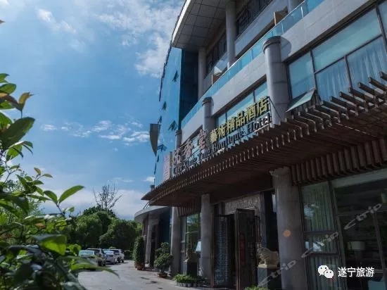 酒店坐落于遂宁市河东新区4A级景区——观音湖湿地公园内,是正对市体育馆的一幢独栋商业景观楼;作为地理位置得天独厚的艺术精品酒店,坐拥生态湿地走廊,紧邻观音湖下穿隧道口(离老城区中心约5分钟车程),窗外绿翠环绕、湖光粼粼。酒店以传统文化为特色,配备时尚、人性化的设施设备,满足现代人的高品质生活需求。遵崇中华五千年的文化精髓,配以明清家具、木雕摆件、石雕佛头、名家字画等,其外在的沉稳、宁静、素雅之气与内在的静谧、平和之美相得益彰,让人"心之所向,身之所往"。