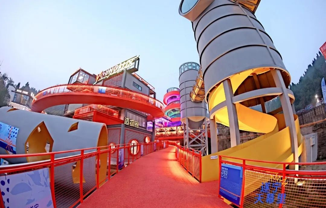 天幕里位于市河东新区东山森林脚下,在原中铁八局商混站旧址的基础上,充分利用原有建筑并对部分区域进行改扩建,已建成露营区、机车集市、青年旅社等多个备受青年消费者喜爱的潮玩区