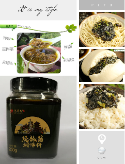 精选上等青二荆条辣椒用炭火烧至煳香,剁碎了下入油锅后,再加蒜、盐等调料炒香。味道香辣不腻、清香可口,可拌饭、凉粉、面、馒头等各种菜品调料。