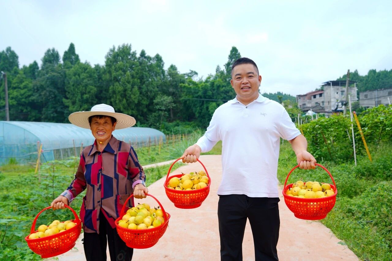 伍勇士捧起一个金黄的果子,脸上满是自豪:“我们选的是‘钦蜜9号’黄金百香果,十分适合鲜食。它抗病性强、耐高温,特别适合遂宁气候。最关键的是,它甜度高,几乎不带酸味,打破了很多人对百香果‘酸掉牙’的刻板印象。”