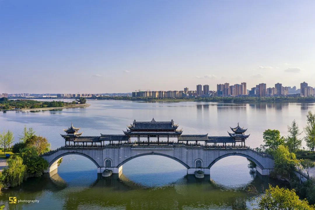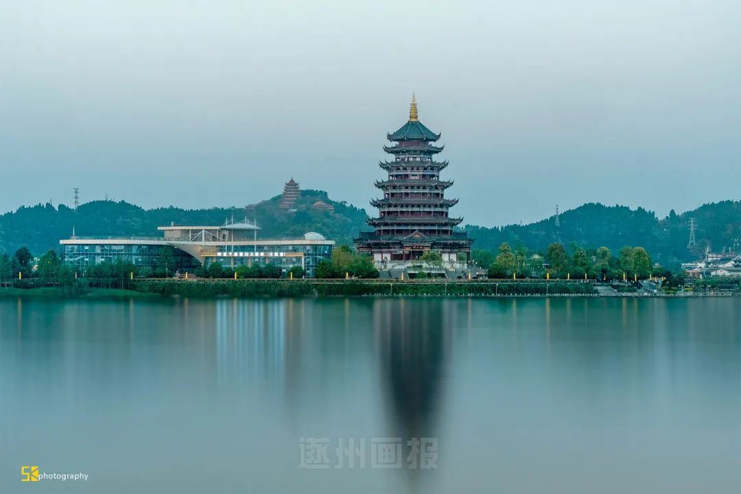 北边,蜿蜒的涪江水淌过多彩的城市公园