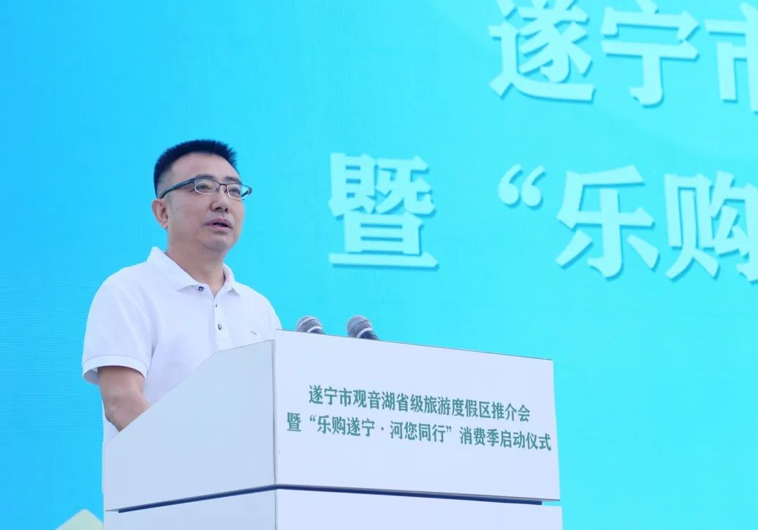 7月30日,市河东新区在临仙阁举行观音湖省级旅游度假区推介会暨“乐购遂宁·河您同行”消费季活动启动仪式,开启创建观音湖国家级旅游度假区新征程。在落实好中省市系列“惠企纾困政策”的基础上,市河东新区再次拿出真金白银减轻企业负担,促消费、惠民生、暖经济,推动服务业提速复苏。市委常委、副市长、市直机关工委书记岳建光出席启动仪式。