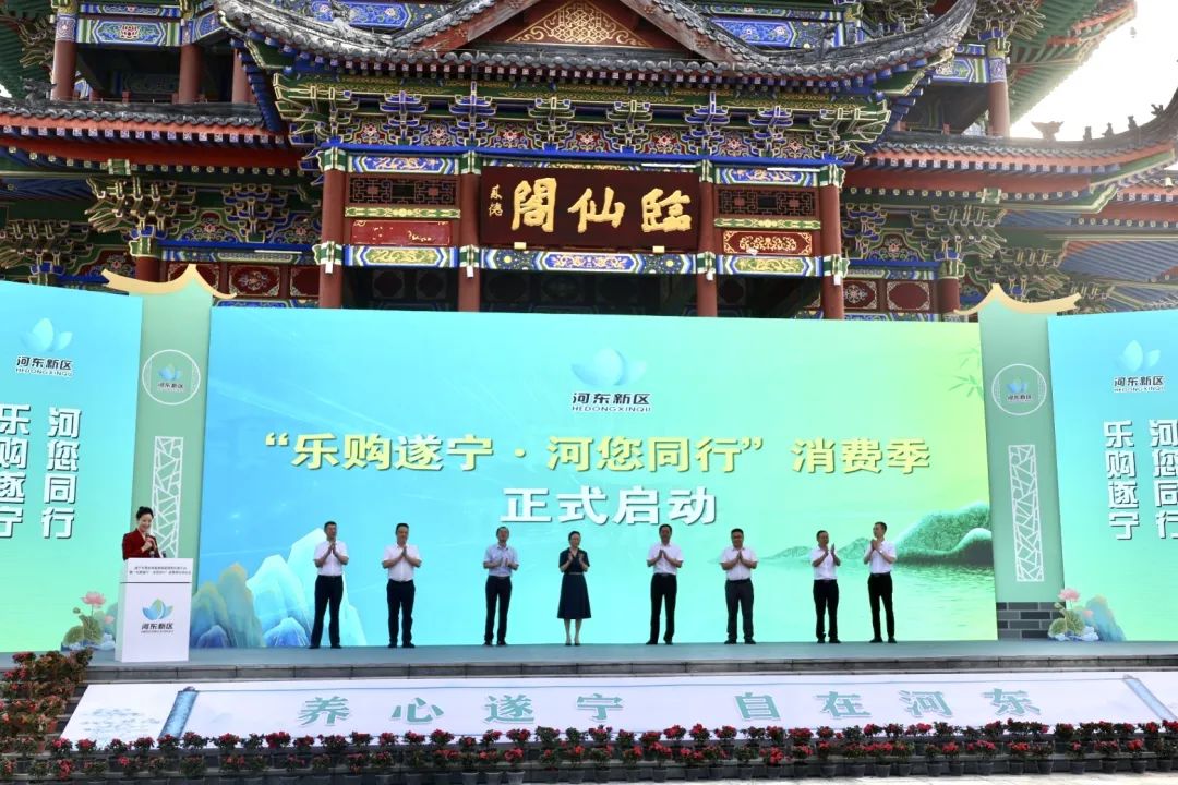随后进行的“乐购遂宁·河您同行”消费季启动环节,相关领导上台触屏启动“乐购遂宁·河您同行”消费季活动。