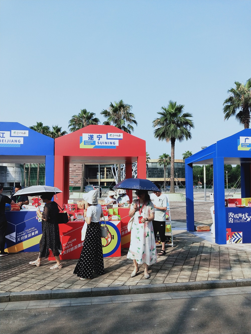 活动现场,我市观音素麻花、遂州姜糕、大安牛肉、遂宁豆腐干等天府旅游美食在现场进行了展示展销和品鉴,众多市民顶着38度的高温来到展场体验和品尝。遂宁文旅工作人员向成都市民及游客发放了遂宁美食地图、2022年夏季遂宁市文旅活动等遂宁文旅宣传品。我市的美食推荐人在天府旅游美食直播间进行了网络互动直播,展示了遂宁的特色美食,宣传推介了遂宁文化旅游资源和遂宁美食之旅线路产品,有超过13万网友同时在线收看了直播。
