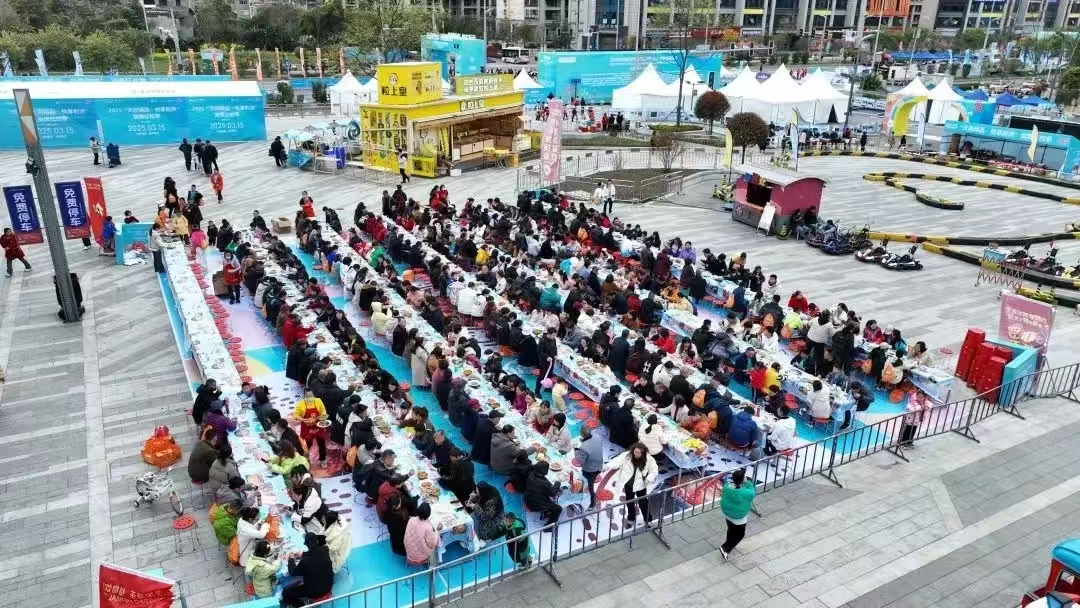 引客入遂,以赛营城。为当好首站东道主,展示独特的城市魅力,射洪以“诗酒射洪”为脉络,首创“火炬环城传递+诗酒主题赛道”,现场既有非遗展演、农副产品展销,还有千人砂锅坝坝宴。在激发群众健身热情的同时,射洪更以赛事为杠杆撬动地方经济、文化、生态的综合发展,开启宠客模式,提前推出特价酒店、特色美食打卡点等,发放百万消费券,设置舍得消费专场,联动京东购物节,实现“参赛享优惠”,参赛运动员凭参赛证可六折换购沱牌、舍得指定系列产品。通过精准定位、特色创新与可持续运营,更将赛事打造为全国知名的“全民健身样板工程”,实现“办一场赛、兴一座城”的长远目标。活动还通过网络进行了直播,数以万计的各地观众争相观看、点赞。