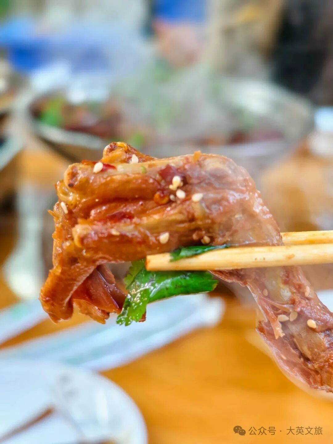 新鲜豆皮煎得微焦,裹上切碎的折耳根、小米辣和秘制酱料,一口下去脆嫩中带着鲜辣,折耳根的独特香气和豆皮的豆香完美融合,这才是大英的专属开胃菜。