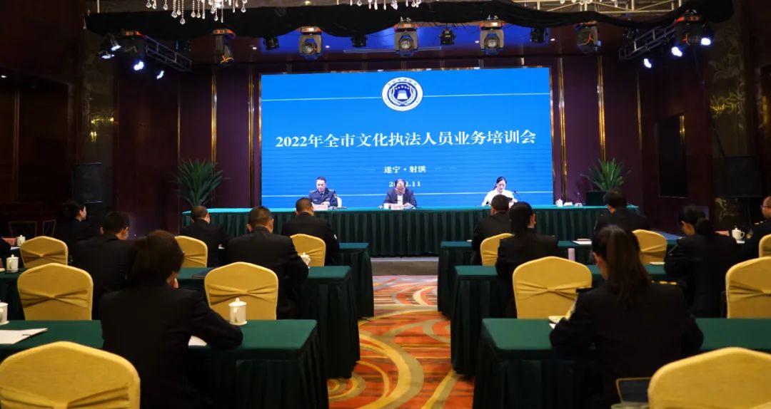 11月24日上午,遂宁市文化旅游市场综合执法业务培训会在射洪市召开。遂宁市文化广播电视和旅游局党组成员、副局长向永德出席会议并讲话。培训会由遂宁市文化市场综合行政执法支队队长黄云主持。