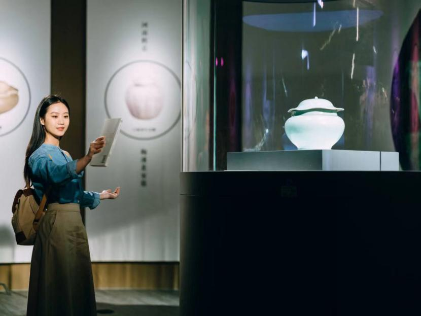 整个展馆由读瓷、听瓷、赏瓷、制瓷、鉴瓷五大篇组成,走进展馆,通读这五篇,你便能感悟到宋人的淡雅宁静、含蓄柔和之韵。青瓷和青白瓷吐露着温润细腻的玉器质感,如远山晚翠,如浅草初春。