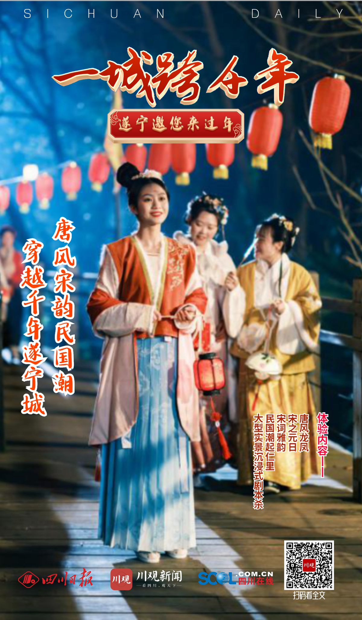 春节,遂宁将在龙凤古镇、四川宋瓷博物馆、遂宁市图书馆和仁里古镇等地举行全域沉浸式体验游,让市民游客在休闲娱乐中玩转唐风宋韵民国潮。届时,无论是贞观年间的太平盛世,还是赵宋之世的纸墨翻飞,或是民国的浮世百态,都尽在这一城之中“再现”。