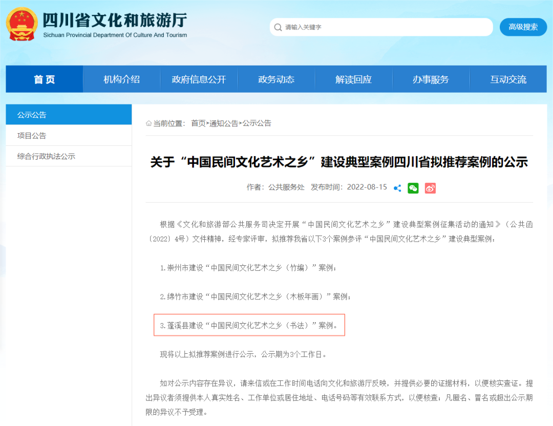 3.蓬溪县建设“中国民间文化艺术之乡(书法)”案例。