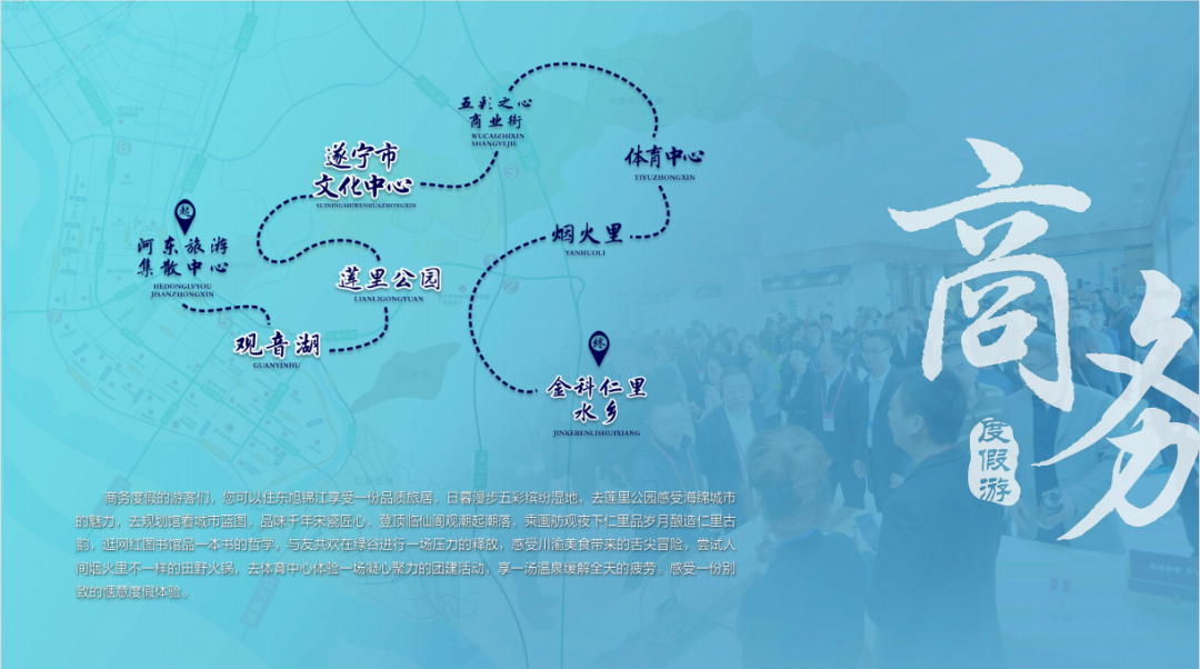 观音湖、莲里公园、遂宁市文化中心、五彩之心商业街、体育中心、烟火里、金科仁里水乡
