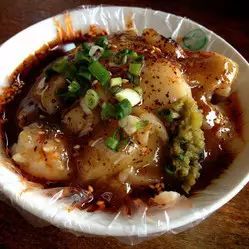 窝子凉粉是遂宁街头最为常见的小吃之一。主要是把玉米、红薯、豌豆等多种粉按比例调好放进坛子里炕熟,然后开窝,吃时用薄片一层层刮进碗里,放上佐料,便可开吃。