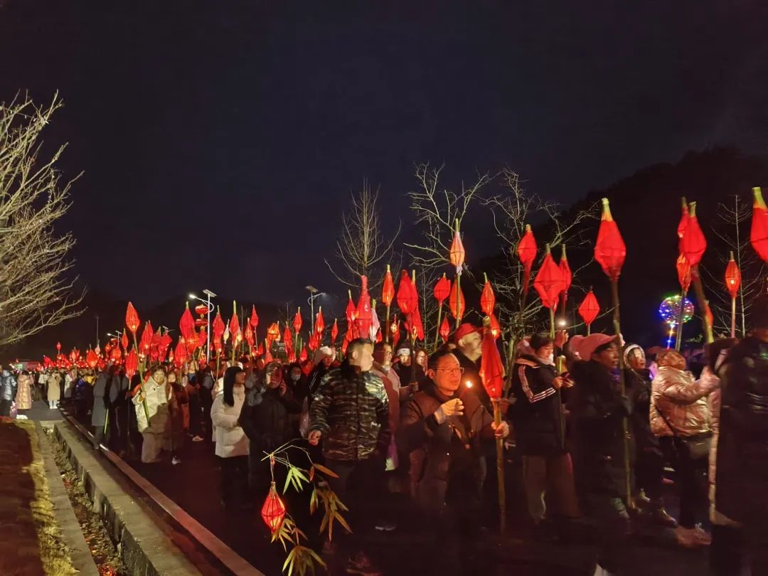 晚饭后,天黑下来,家家户户的“蛴蟆灯”便陆陆续续地亮了起来。这时候,鞭炮齐鸣,抬着“蛴蟆灯龙船”,成千上万的人不约而同地举着“蛴蟆灯”聚集到一起。老人牵着孙子,母亲抱着孩子,朋友们三五成群,向离家最近的河滩、田坝走去。
