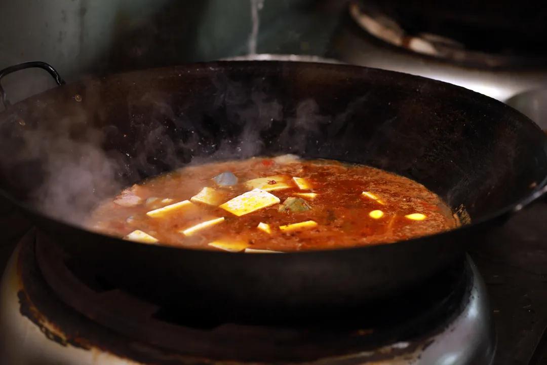 砣砣鱼的上菜形式也相当豪爽,往往是大盘盛肉,大盆装汤,就如同琼江汉子的豪迈耿直,不拘小节。红彤彤的鱼汤,闻起来香气四溢,汤里的鱼块,质地如豆腐一样,用筷子轻轻一夹就碎。入口之后,先是感觉到鱼肉的滑嫩,随后辣味渐显,接着,舌头开始酥麻,入口即化,爽滑细嫩、香辣回甜,油而不腻,鲜而不腥。