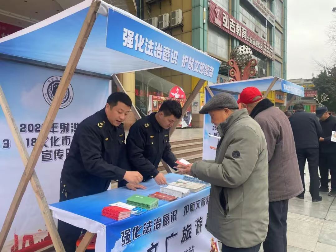 为深入贯彻落实习近平法治思想,扎实推动“八五”普法工作走深走实,全面提升遂宁文化旅游市场法治化水平,营造公平有序、健康和谐的文化旅游市场环境,3月18日,遂宁市文化市场综合行政执法支队积极组织各县(市、区)开展以“强化法治意识,护航文旅繁荣”为主题的法治宣传活动。