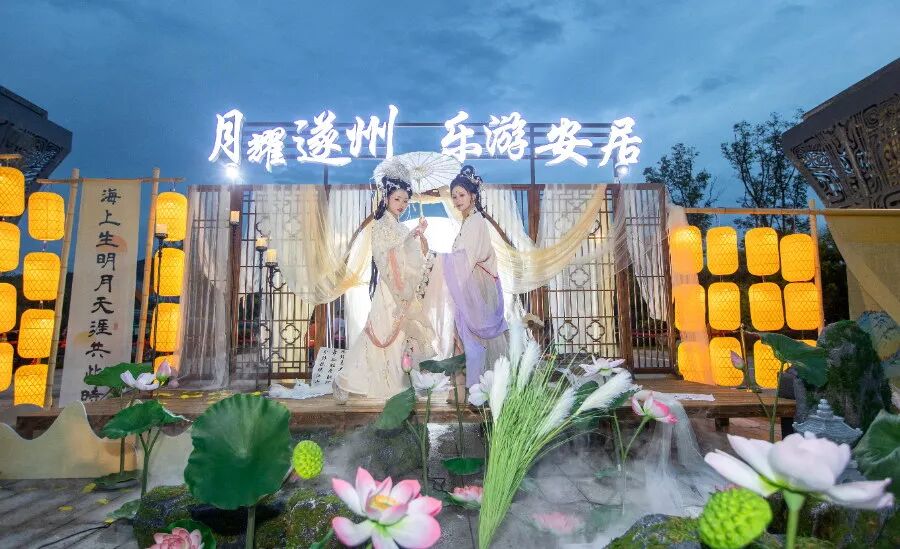 共庆“双节”,活动不止于一场底蕴深厚的晚会,更汇集了民俗体验、文创集市、特色表演、供销集市、游乐项目等主题游玩、消费场景,将持续至10月3日结束。游客们在谜趣寻月、举弓邀月、对月吟诗等“闯关”游戏中体验古代文人墨客寄月抒怀的情景;在飞天火壶秀等特色表演、非遗集市中感受遂宁传统文化精粹;在供销集市的美食长廊中品味烟火遂宁的独特滋味。