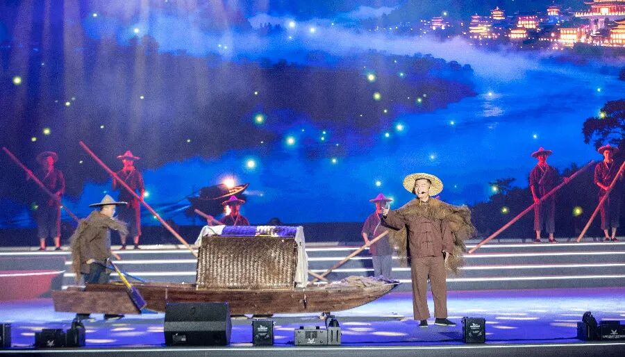 主会场,歌声悠扬、光影交错。活动在古典舞《月下遂州》中拉开帷幕,用独属于华夏儿女的中式浪漫将大家心中的缱绻情感一一诉说。晚会将遂宁1600多年优秀传统文化的深厚底蕴,古遂州先哲、先贤的思想智慧完美融入,民歌联唱《船工望月》、音乐剧《石刻说月》成为活动的点睛之笔,让晚会有新意、更具内涵。