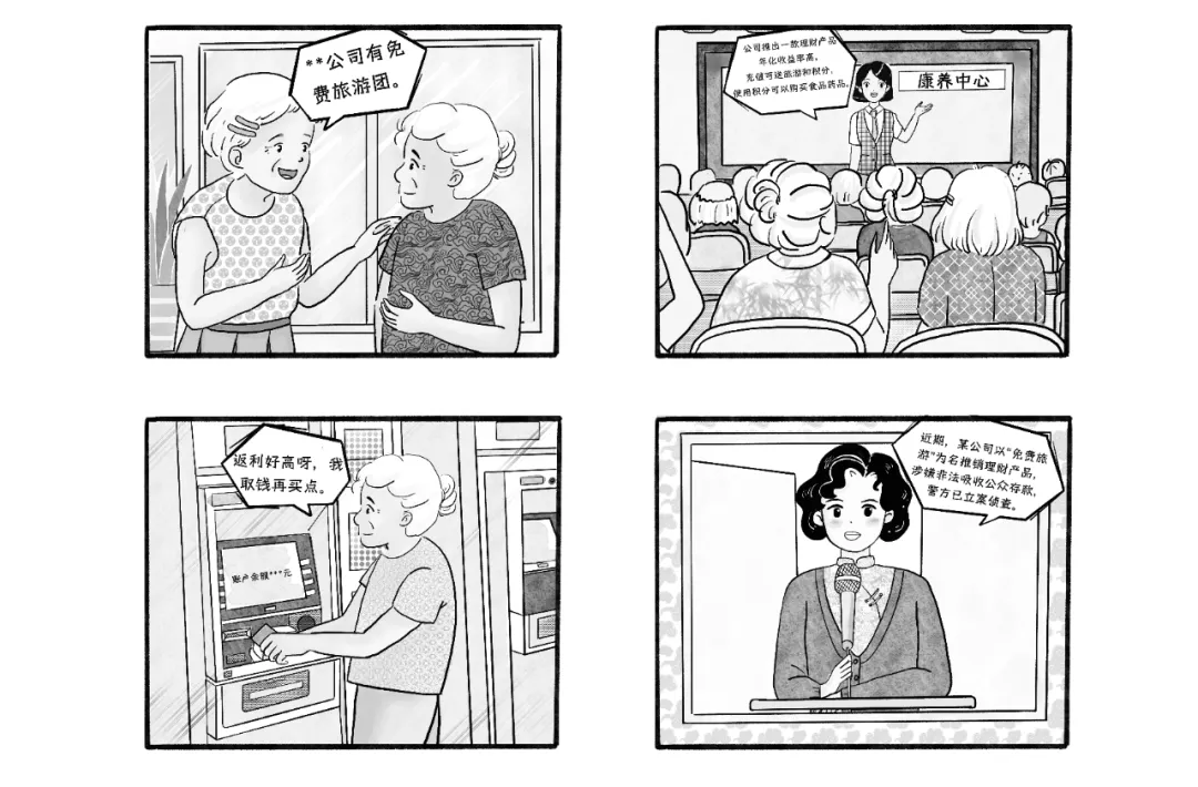 目前,市场上存在以旅游为名的非法集资行为,具有高额利润诱惑、隐蔽性强等特点,目标客群多为中老年人。以免费或低价旅游为诱饵,诱导消费者购买保险、理财产品或充值投资,承诺的“高额回报”违背市场规律,背后暗藏投资风险。