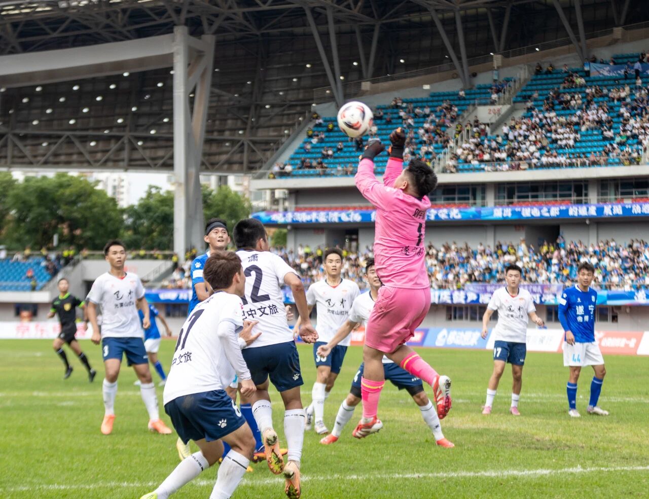 比赛开始前,游客、球迷们满怀期待来到遂宁体育中心,为喜爱的球队欢呼加油;哨声响起,大家擂鼓助威,为球员们的每一次奔跑、抢断、射门注入力量。攻防转换之间,点燃了现场每个人的澎湃的热血,也激起大家更加极致的拼搏。