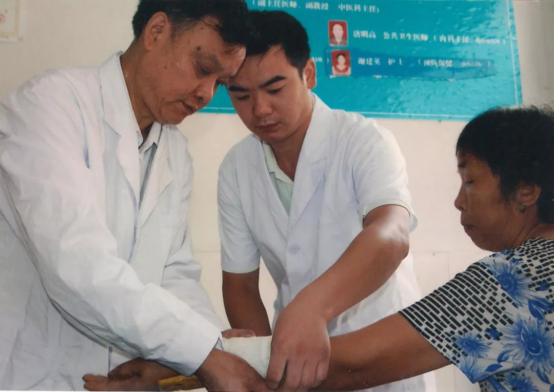 △传统医药类—“油符”疗法技艺 赖伯骥(左一)、赖前进(中间)