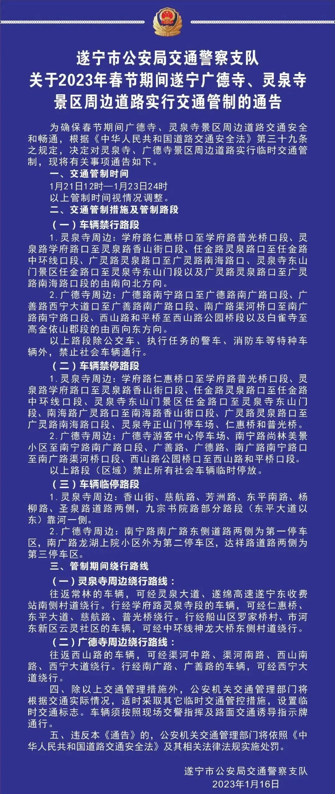 春节期间遂宁广德寺、灵泉寺景区这些路段实行交通管制