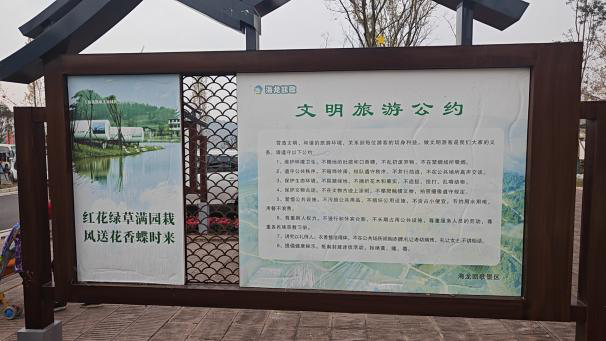 “做文明游客为中国加分”“旅游美时美刻,文明随时随地”“诚信经营手牵手,放心消费心连心”……走进海龙凯歌景区,这样的文明旅游宣传标语随处可见,景区内广播还不间断播放着文明旅游、诚信经营等宣传内容,时刻提醒着游客文明出游,营造文明景区的浓厚氛围。