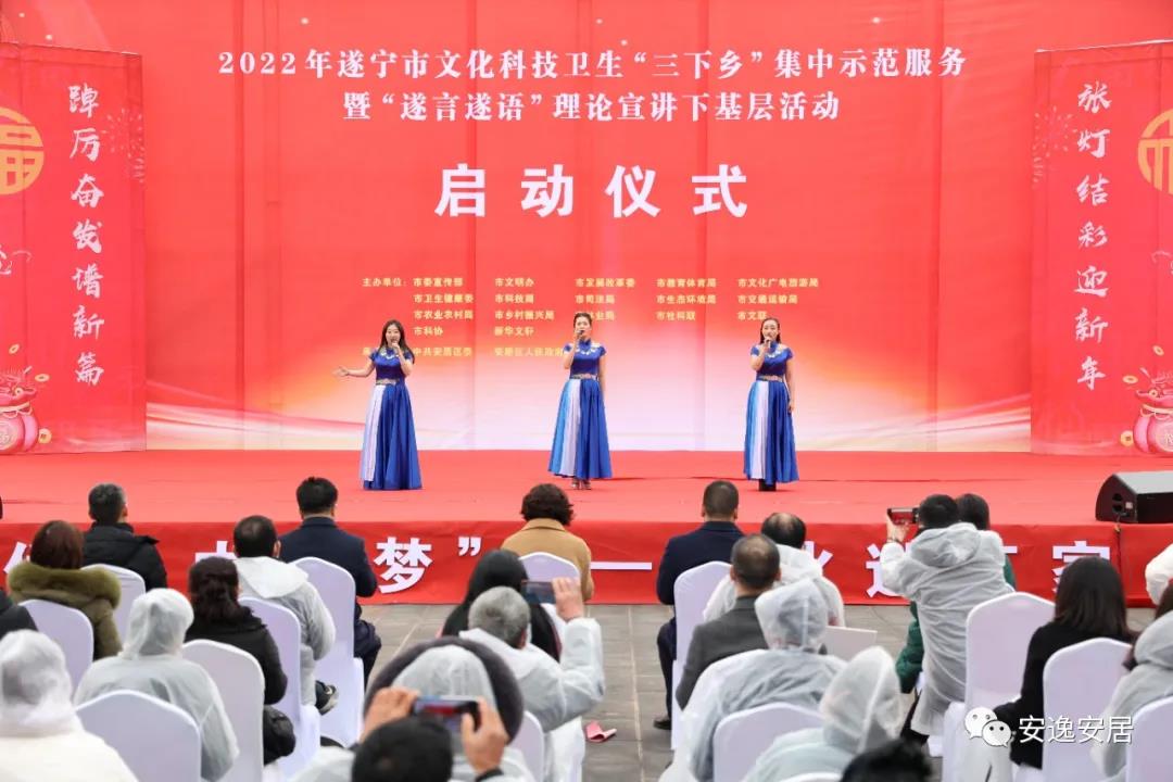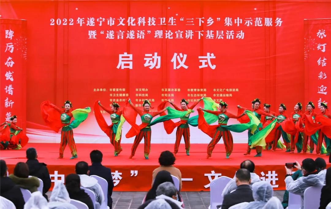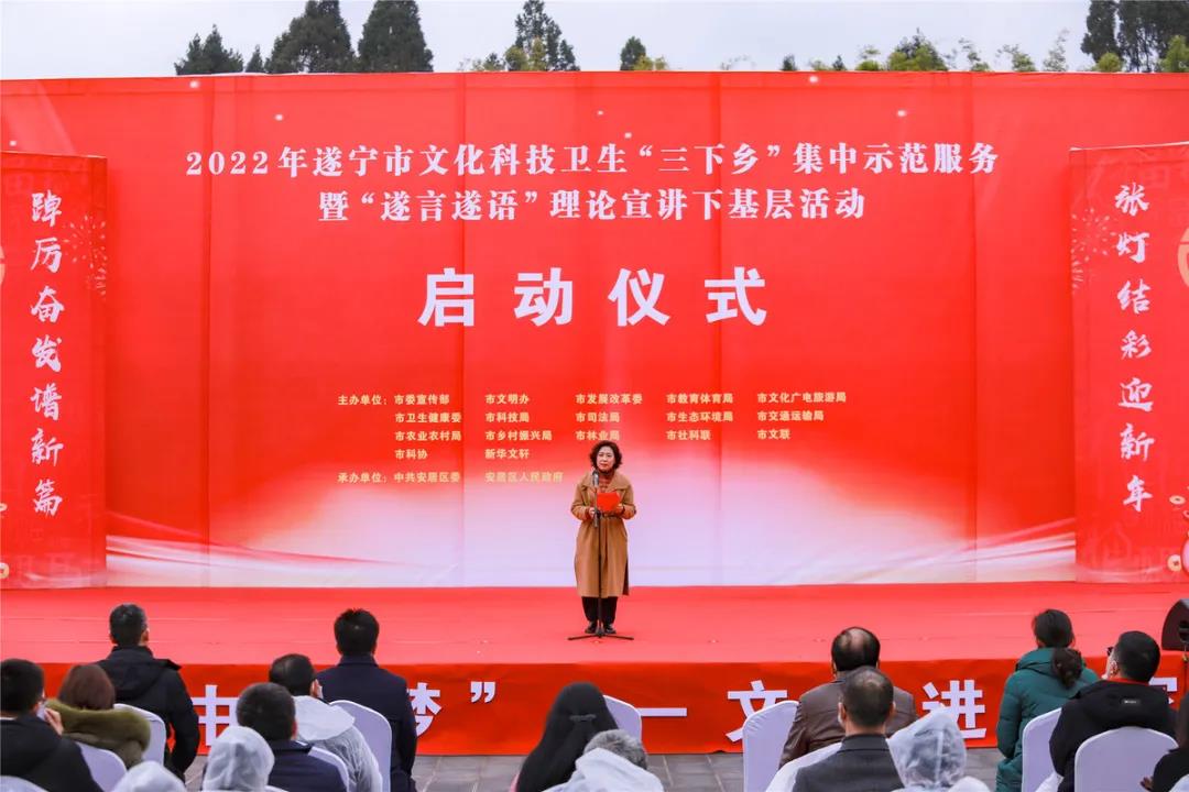 1月28日,遂宁市文化科技卫生“三下乡”集中示范服务暨“遂言遂语”理论宣讲下基层活动在安居区常理镇海龙村举行。市委常委、宣传部部长、市总工会主席、遂宁高新区党工委书记涂虹出席启动仪式并致辞。