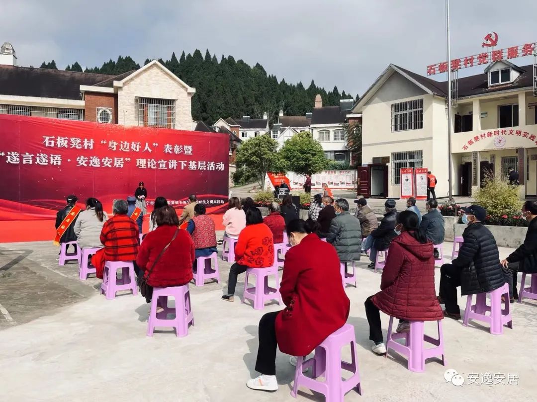 “接下来,我们将持续开展‘一根板凳两头坐 发展大计你来说’的院坝会,‘一根板凳两头坐 家长里短跟我说’的谈心会,‘有事请找我 我为你服务’的党员志愿活动,让邻里关系更融洽,乡风更文明、干部作风更好,百姓的日子过得更红火,让全国文明村底色更亮。”聚贤镇石板凳村支部书记兼主任郭建波说道。