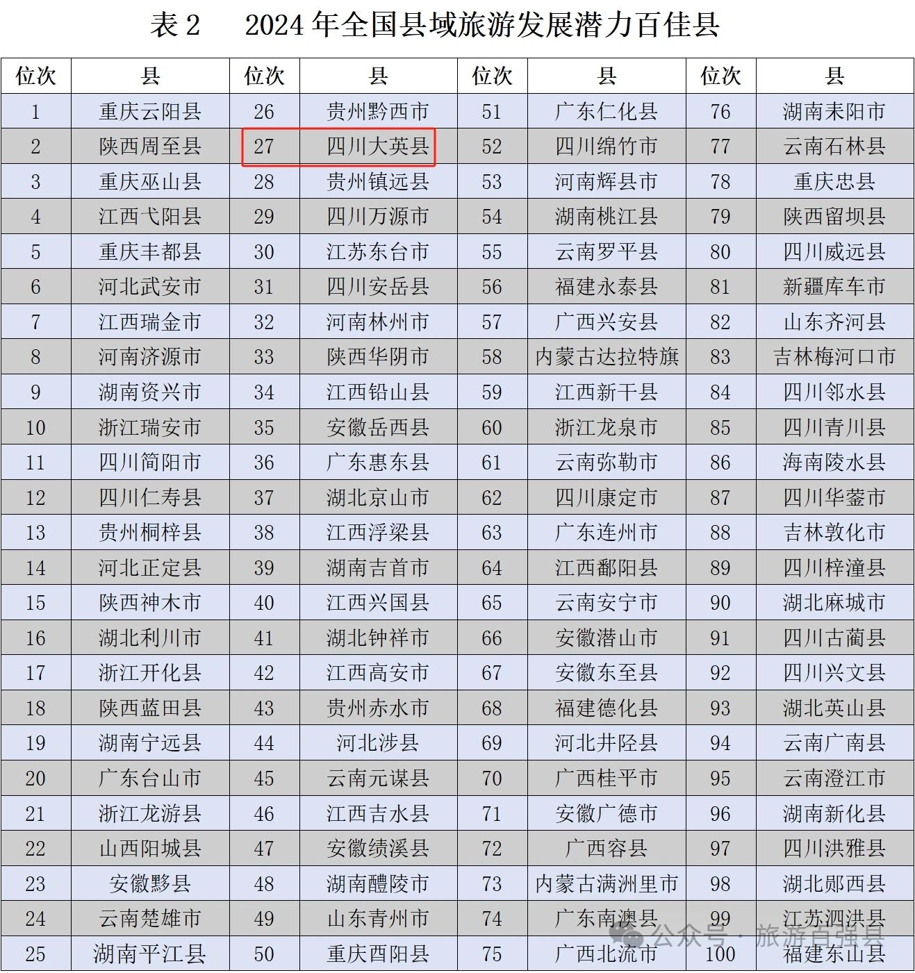 近日,全国县域旅游研究课题组、华夏佰强旅游咨询中心联合发布第六届全国县域旅游研究成果《全国县域旅游发展研究报告2024》(以下简称《报告》)暨“2024年全国县域旅游综合实力百强县”“2024年全国县域旅游发展潜力百佳县”名单。