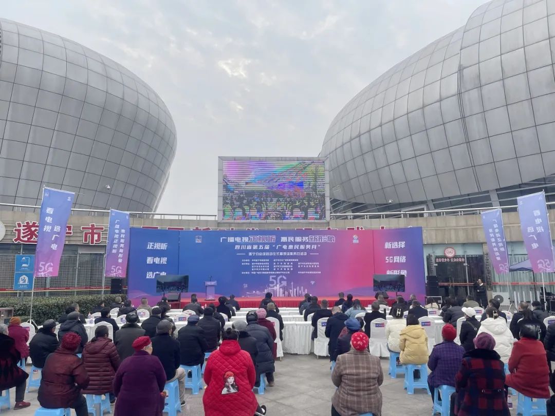 1月10日下午,四川省第五届“广电惠民服务月”启动仪式在广元市朝天区举行,并同步在全省其他20个市(州)开启,正式拉开我省“广电惠民服务月”活动的序幕,活动将持续至2024年2月底。作为分会场之一的遂宁市在安居区体育中心同步启动。