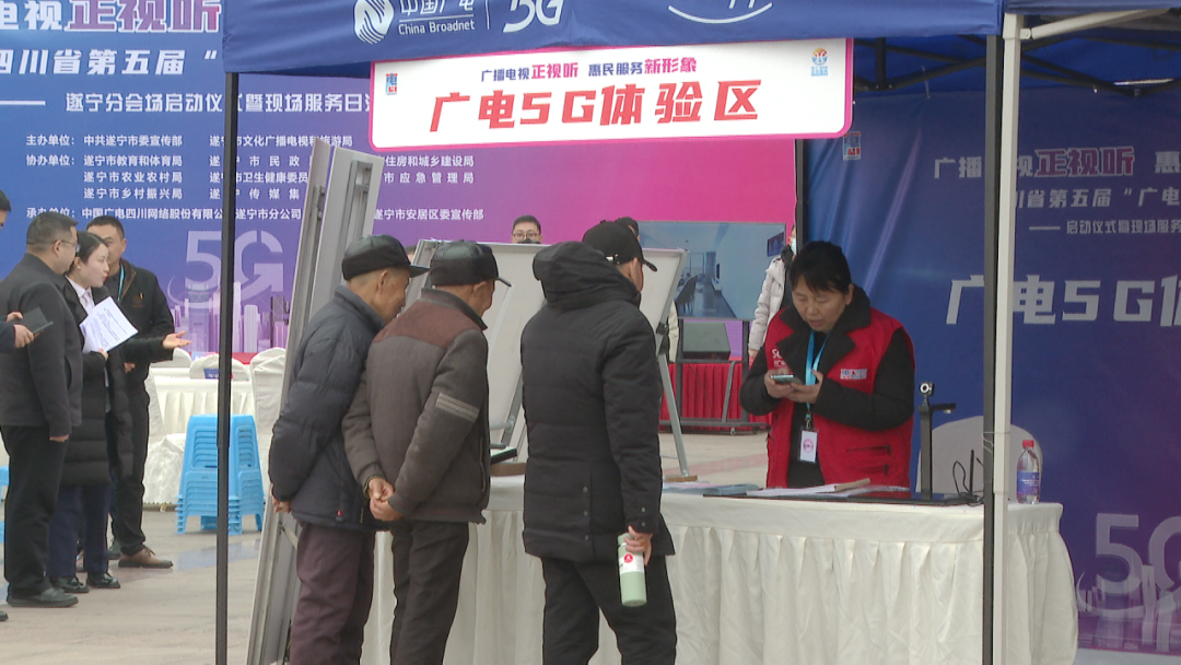 启动仪式上,与会者集中观看了省主会场启动仪式,介绍了遂宁市第五届“广电惠民服务月”活动整体安排,发布惠民清单。现场集中展示前四届“广电惠民服务月”工作成果和“套娃”收费及操作复杂治理第一阶段工作成效,设置展示区及服务区,以“广电5G体验区”“川流3.0云视听示范区”“智慧家庭产品体验区”“广电惠民服务区”“趣味活动互动区”五大互动体验场景,向群众多方位展示全接触惠民服务。
