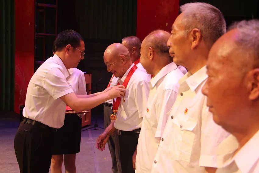 岳建光为“光荣在党50年”老党员代表发放纪念章