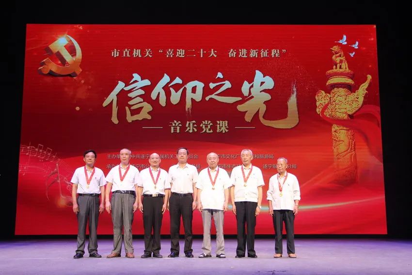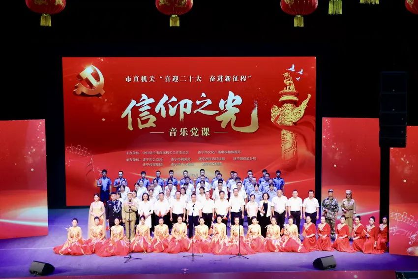 随后,“信仰之光”音乐党课主题宣讲拉开帷幕,《灯火里的中国》《平凡的光》《守护》《普一曲坚定信仰的青春之歌》《迎着光》《不变的初心:从脱贫攻坚到乡村振兴》《红色家书》《信仰之光》等节目轮番上演。整个音乐党课将音乐与党课互融,运用艺术魅力、语言感染、舞台演绎等方式,围绕党课中心思想,从不同视角诠释共产党人的信仰,激励我市广大党员干部,探寻初心密码、牢记信仰使命、凝聚奋进力量。