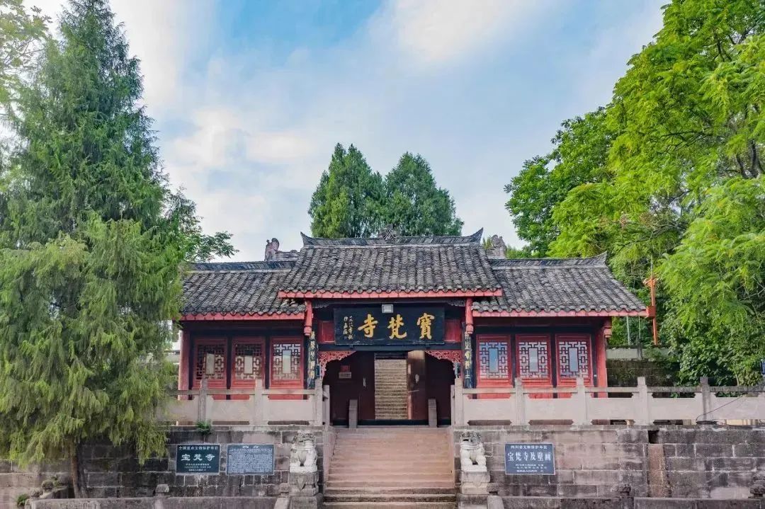 宝梵寺虽隐于川中一隅,但寺内的壁画却蜚声海内外,有“川中敦煌”之誉,被专家学者称为“不可多得的祖国绘画艺术珍品”“四川壁画之精华”。清代文人有诗《赞宝梵仙画》:“古寺钟灵秀,霞光霭万重。凤歇观音竹,鹤眠罗汉松。集成双活虎,圣捧九飞龙。仙笔抒妙品,丹青耀禅宗。”
