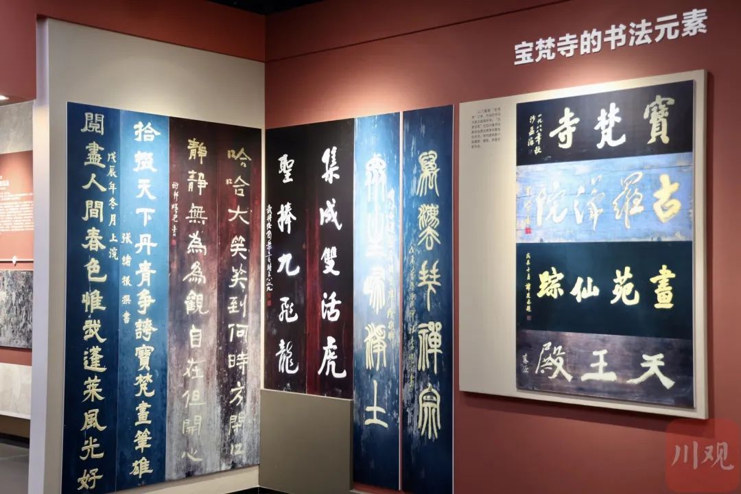 宝梵壁画展示展览厅紧邻宝梵寺,以壁画历史文化和全国重点文物保护单位宝梵寺中的“宝梵壁画”故事为主题,分世界壁画的起源、中国壁画的历史发展沿革、蓬溪——古壁画艺术之乡、《西游记》连环图画、国宝的利用和保护等篇章,依据壁画发展历程的先后顺序设置展陈内容,不仅以具象“活态”的形式呈现壁画历史,同时也展示了蓬溪壁画的历史和分布情况和宝梵寺相关建筑艺术、书法元素等。