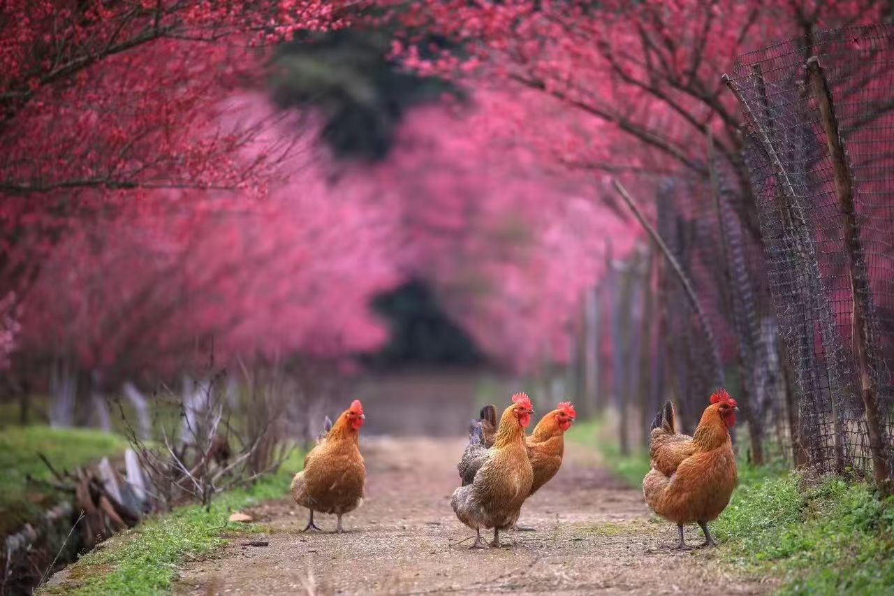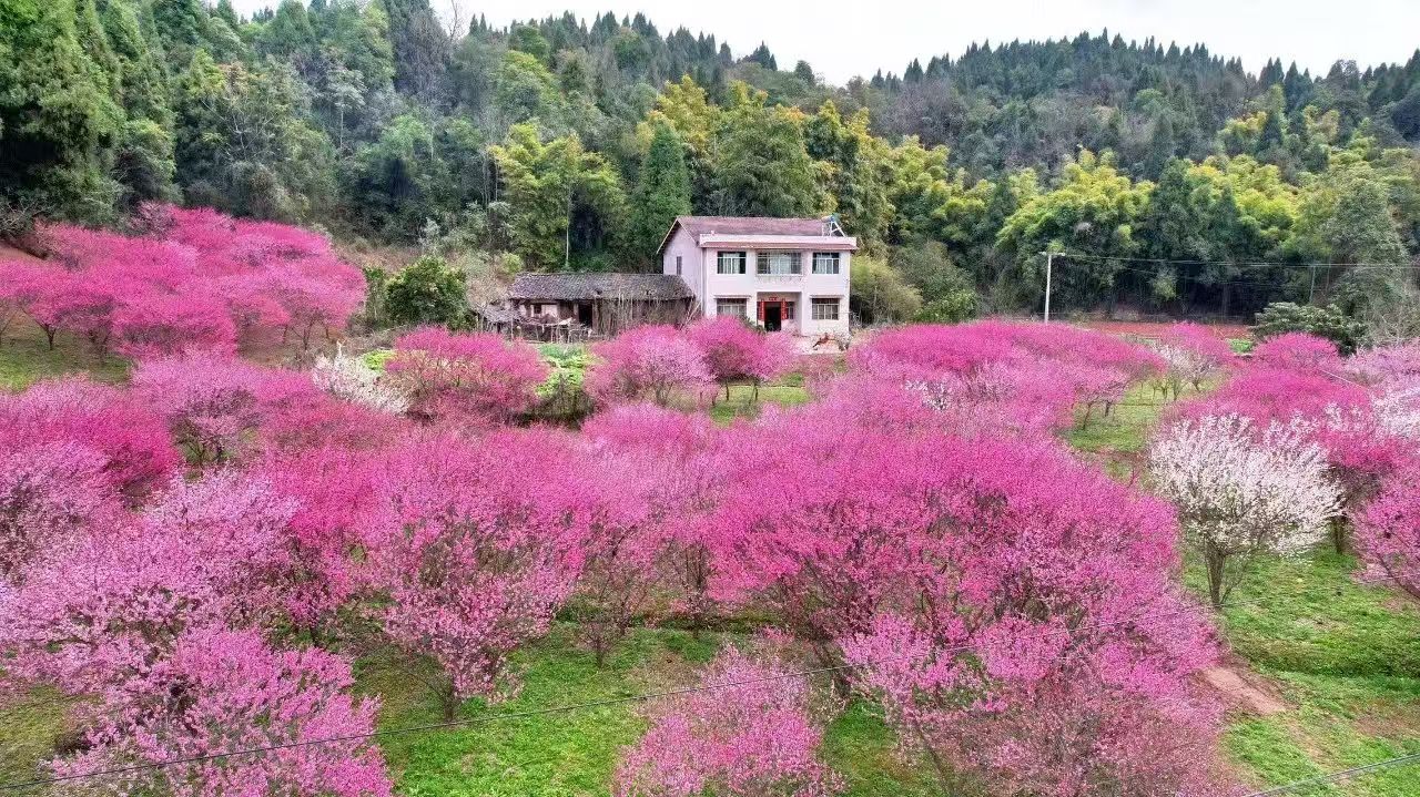船山区永兴镇朝阳村60余亩红梅花竞相绽放,漫山遍野的梅花,美不胜收,整个村庄如诗如画。