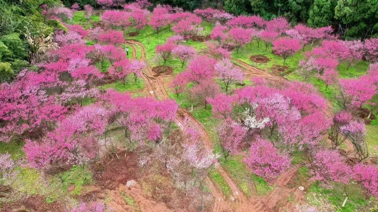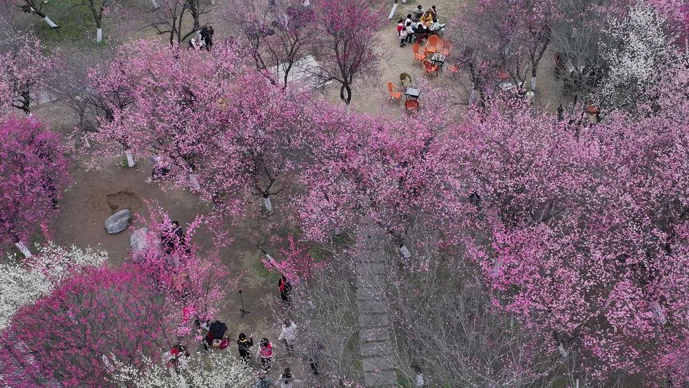 在射洪市平安风景区内,梅花迎着春风,肆意绽放,勾勒出绝美的春日图景,引来广大市民游客前来观赏,他们漫步梅林拍照、赏花、喝茶,沉醉春光,尽享新春惬意。