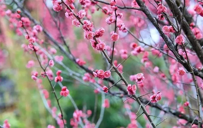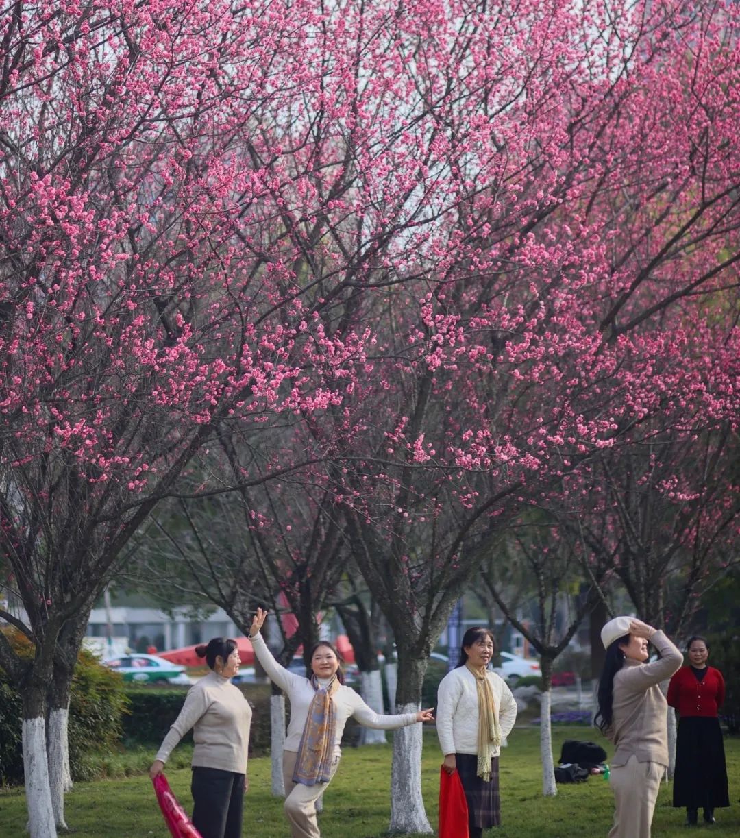 花园干道的梅花簇拥在一起,花瓣层层叠叠,粉的娇艳、白的素雅,深浅交织。远远望去似天边飘落的云霞,又像画家随意泼洒的颜料,美得肆意又张扬。