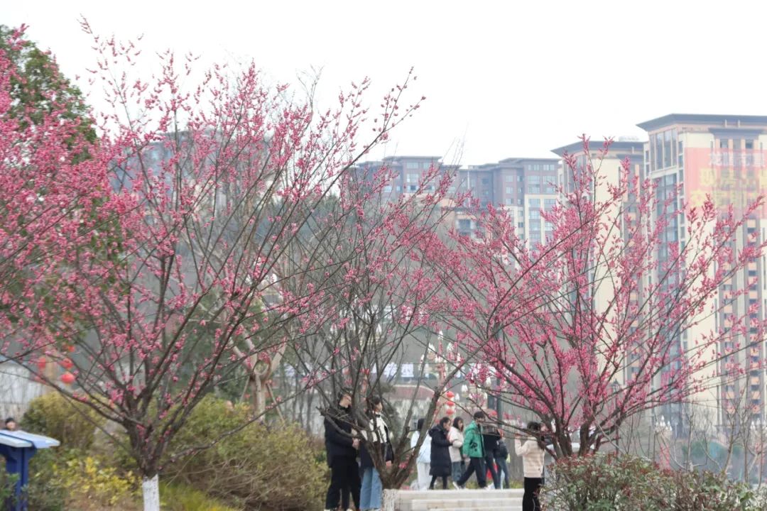梅蕊腊前破,梅花年后多。目前正到了红梅开得最艳的时节,遂宁的红梅正如珍珠般散落在大街小巷,为市民游客送来春天的暖意和馨香。