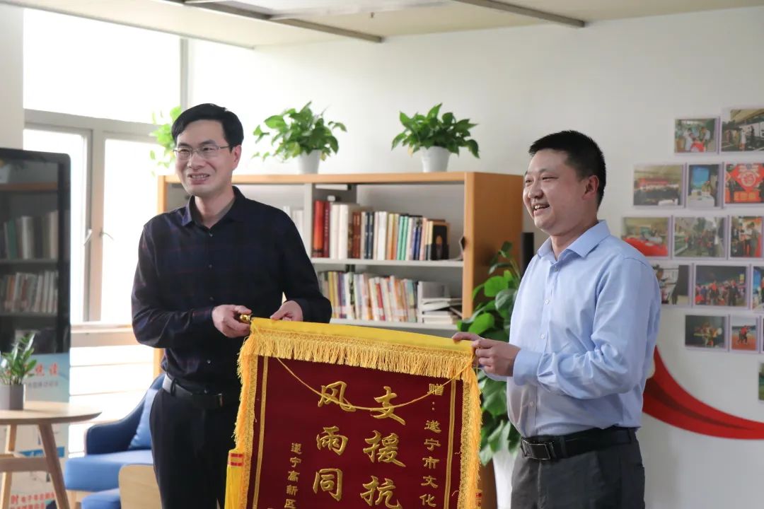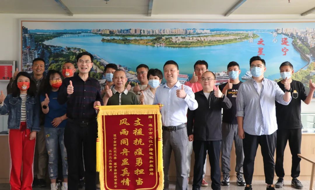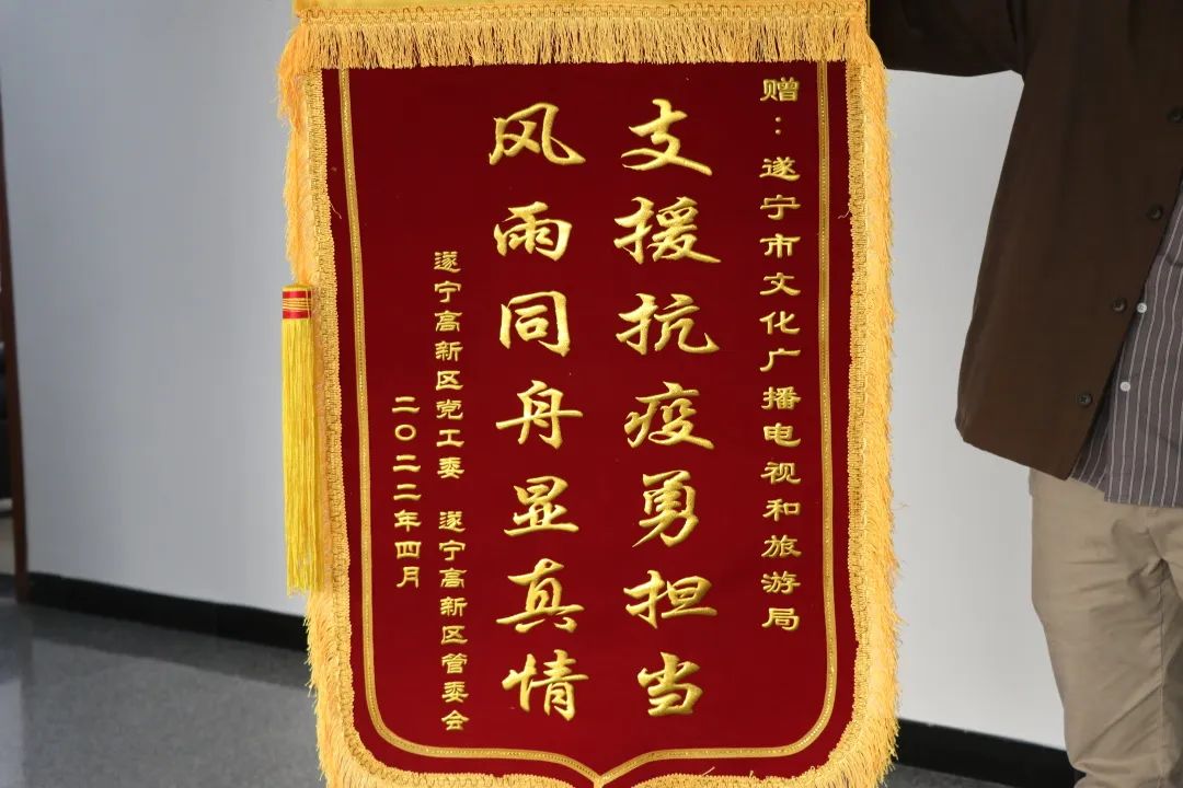 “感谢这段时间志愿者们的辛苦付出!”4月13日,遂宁高新区管委会副主任金欣带队为市文化广电旅游局送上了一面“支援抗疫勇担当 风雨同舟显真情”的锦旗,感谢市文化广电旅游局党员服务先锋队的志愿者们为高新区疫情防控工作作出的贡献。
