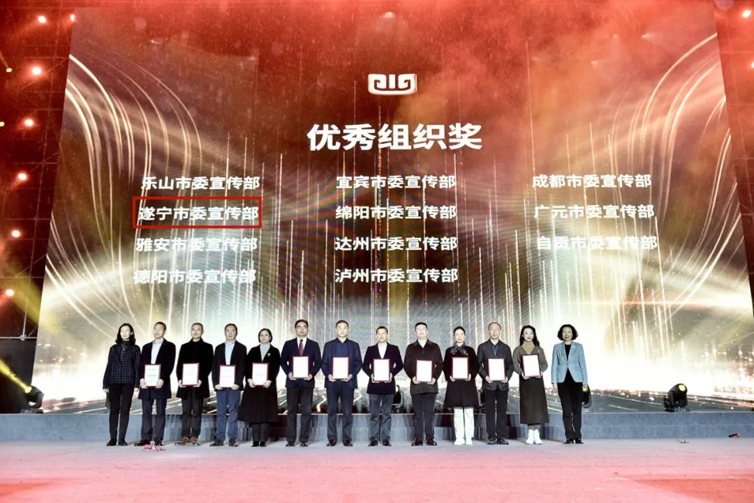据悉,我市2组节目在现场参与演出,射洪市瞿河镇、蓬溪县三凤镇、射洪市广兴镇、船山区唐家乡4个乡镇荣获全省100个魅力乡镇,胥先武、郭建军等5人获得100名文化能人,李张、罗威等6人获得100名乡村代言人称号,遂宁市委宣传部、射洪市委宣传部荣获全省优秀组织奖。