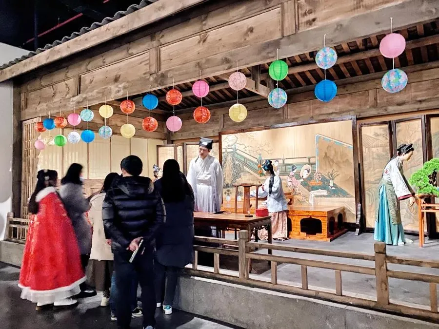 春节假期的四川宋瓷博物馆,张灯结彩、华服美人、琴音袅袅、舞姿飘飘,宋时簪花、与“苏子瞻”玩飞花令、“毕昇”教活字印刷、“李清照”点茶焚香、与“包大人”对弈……琴棋书画、诗酒花茶,人生八雅尽在咫尺之间,种种新奇的沉浸式文化体验过程打破了以往博物馆只能“看”和“听”的局限,让现场的小伙伴们热情高涨,穿越时空,赴一场悠悠古风……