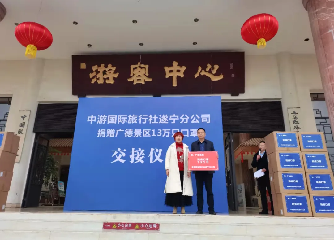 据了解,中游国旅长期为遂宁旅游市场输送优质客源。当了解到广德景区正在为新年疫情防控采购口罩时,该公司当即决定为景区无偿捐赠13万只口罩,助力景区疫情防控。