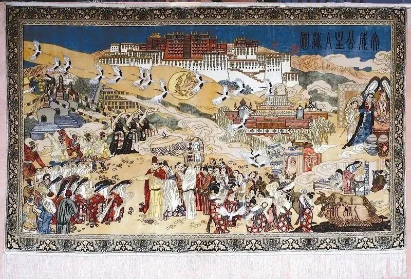 福锦工艺极为繁复,需要经过图案设计、丝线处理、配色、挂经、织锦、过纬、下锦、编穗、平合、洗锦、整理等十几道工序,由于整个织造过程无固定样式,全凭个人的领悟操作,因而没有两幅福锦是完全相同的。尤其高道数福锦,一人很难织出第二块,故而高道数福锦又被称为“软黄金”。